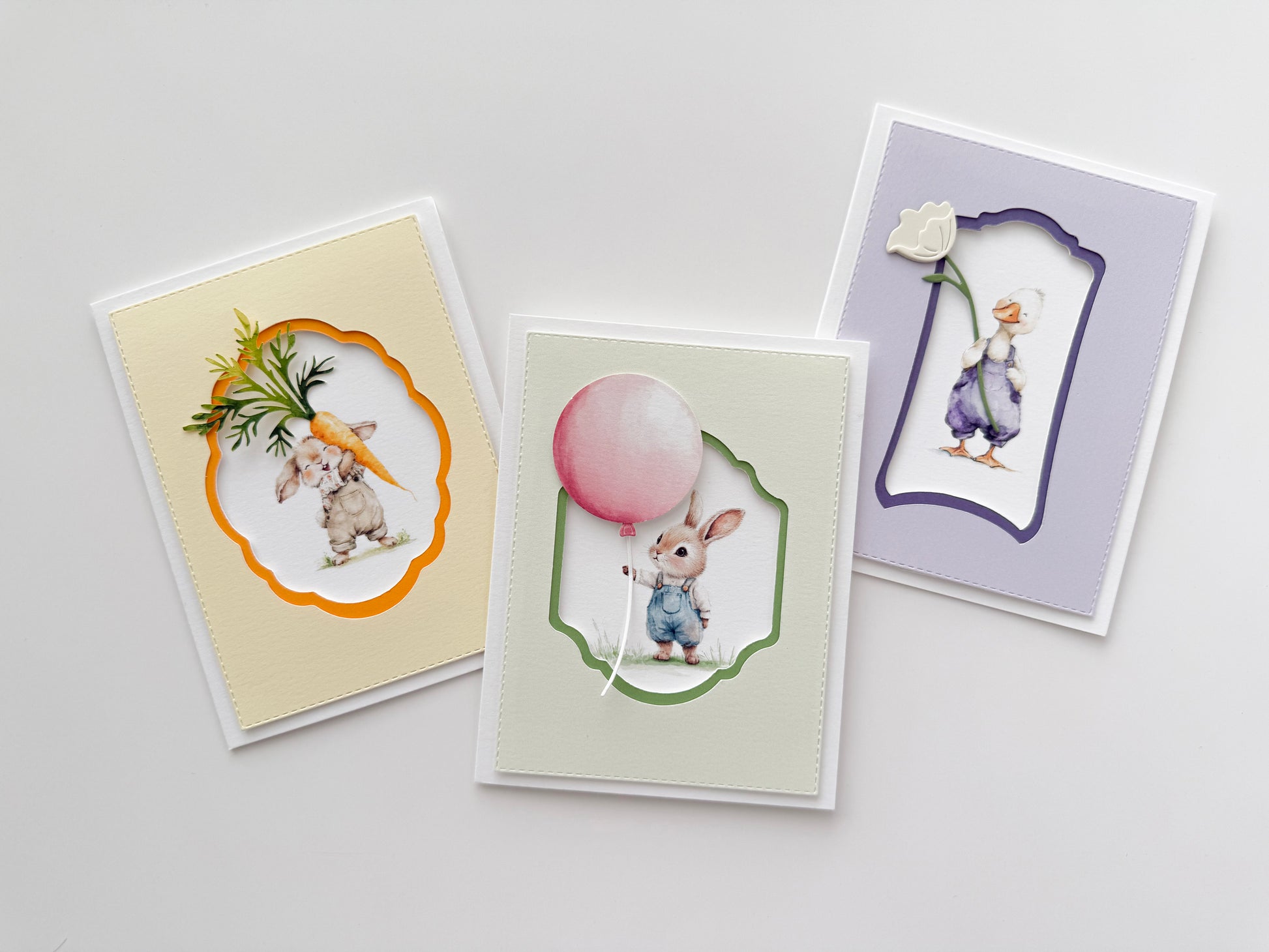 The Paper Layer Cake Easter Keepsake Card Set includes all three designs from the seasonal collection: The Garden Bunny, The Celebration Bunny, and Lily Duckling. Each card is carefully layered and assembled by hand using premium cardstock, resulting in a collection that feels thoughtful, gentle, and timeless. Designed to be cherished, displayed, and remembered well beyond Easter.